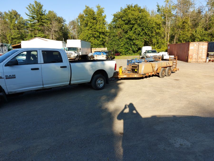 Here's the lifts on the trailer after being loaded.  My buddy bought a used two-post 12,000 forward lift (the blue one).