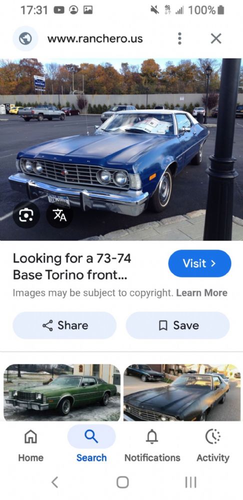 I've been smitten with a 73 Ranchero with a bitchin' drivetrain that's been available for a while, but I balked because the front end not my style.  But I recently discovered the base model 73 Torino grille and it's much more to my liking.