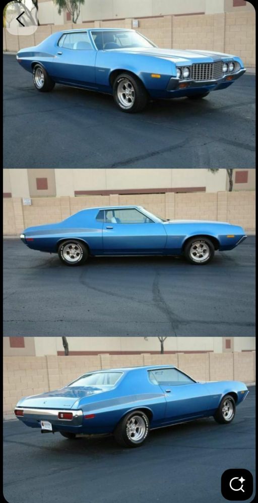 72 only base model Torino just barely still showes the "fish mouth" of the more common Gran Torino 72. Also notice the non 5mph bumper on the front. 73 is a split year 5mph front but not rear bumper,  74 and up all had the government mandated 5mph impact absorber bumpers front and rear.