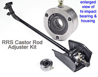 I personally like how easy the RRS is. I was kinda playing with a similar design for our stock rods. Like this.. ![]() Obviously with a spacer between the bearing and the seat that the washer usually sits. I left out all the hardware and stuff too. The caster is adjusted by swapping spacers. This could be very cost effective and a totally bolt-on affair. I just don't like axial load on sphiricals but using a safe number of 15% radial load limit for the axial load limit, a bearing to fit this application wouldn't be anything exotic. The rod is weak in comparison. The only reason I didn't do this is because I don't think the rod is strong enough for what I am doing around that 5/8 thread and of course the axial loading issues. I could make a ton of something like this for cheap.