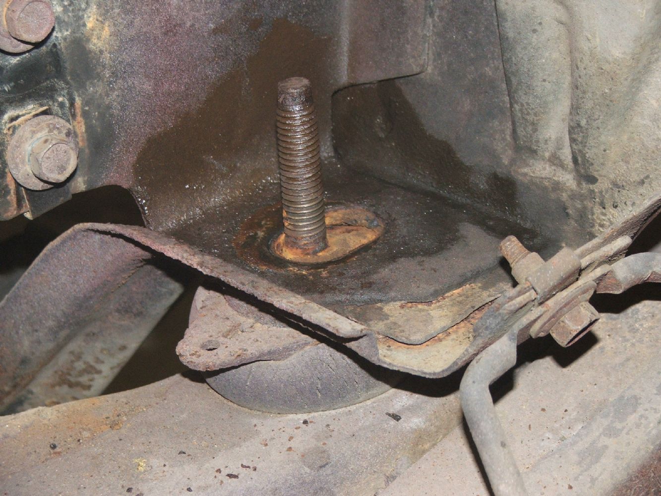 These parts are typical of both sides except driver side does not have the shim. My front has not be touched, so this was how she left the Chicago factory. Perhaps the earlier models had more rubber bushings??