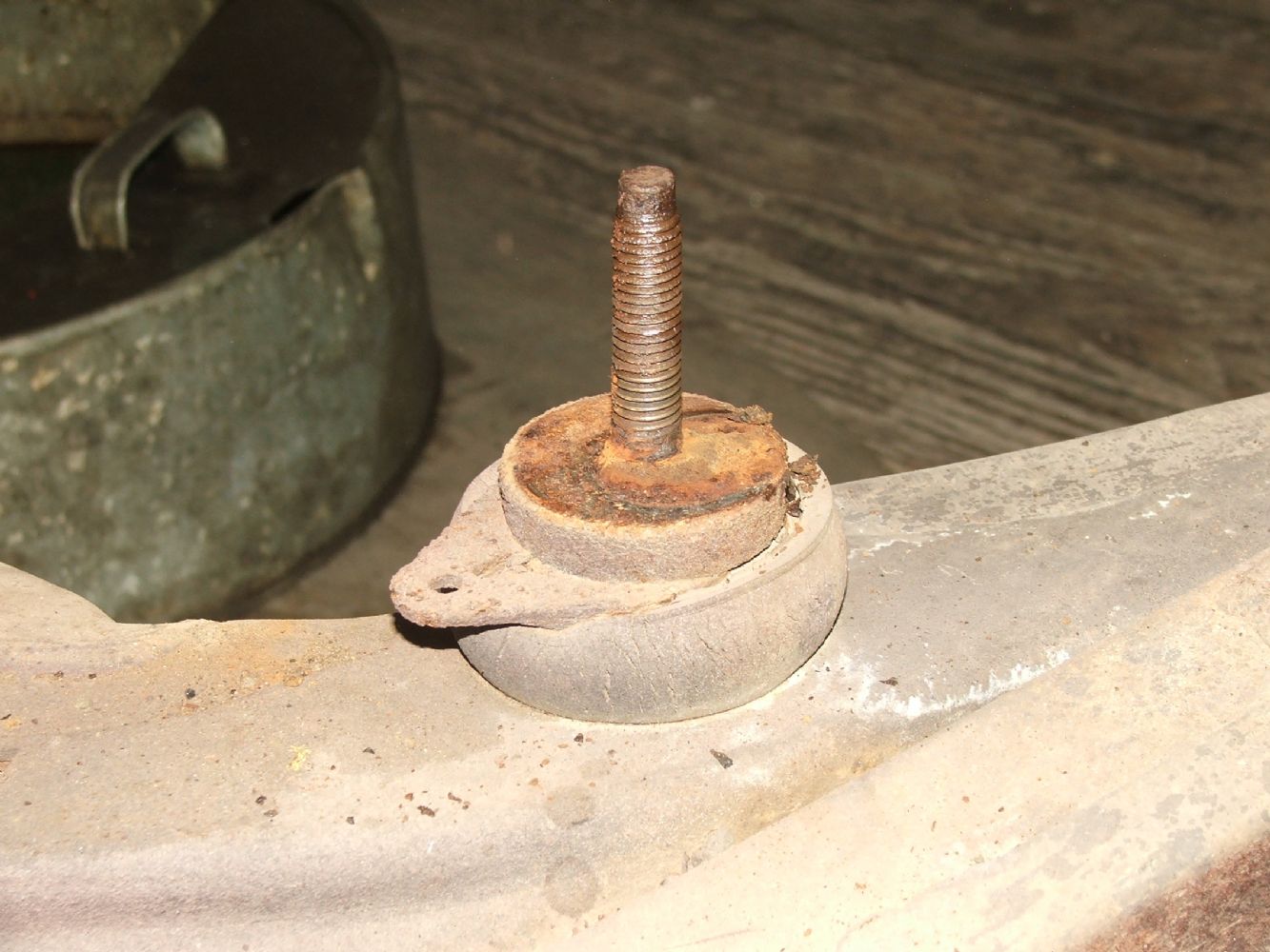 I think I know the answer; the upper bushing "washer" is threaded and acts as the nut keeping the two bushings aligned and tight. Correct? If so, how can I get a really good grip on the bushing washer to keep it from turning as you remove the bolt from below? I'm doing a one man restoration so I need to figure out a way of doing it solo... if possible! Here are what my two core support bushings look like....