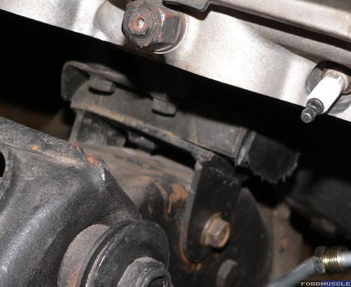 Now, look at your 385 block. You will see there is a lower area on the block between the bolt holes for the mount. Between those holes you drill a hole through the mounts. Now you need the part of the mount that saddles the torino frame. You can bend up/weld up a piece or use one out of a small-block mount. It needs a hole in it to attach to the mount. the bolt goes thru the mount from behind (Tack in place) and is (barely) long enough to assemble the Franken-mount.