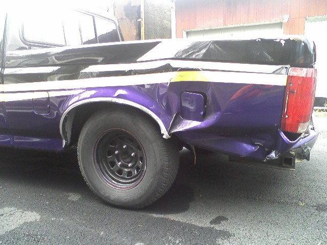 yeah, i got the right purple on it saturday and cleared and cut and buffed sunday night, looks like a million bucks, i'm off work tomorrow, so i plan to match and pinstripe the door, then i can sand and paint the bed, next, then get the truck back to one piece, so he can take it home and i'll have more room in my shop to start disassemble the torino
