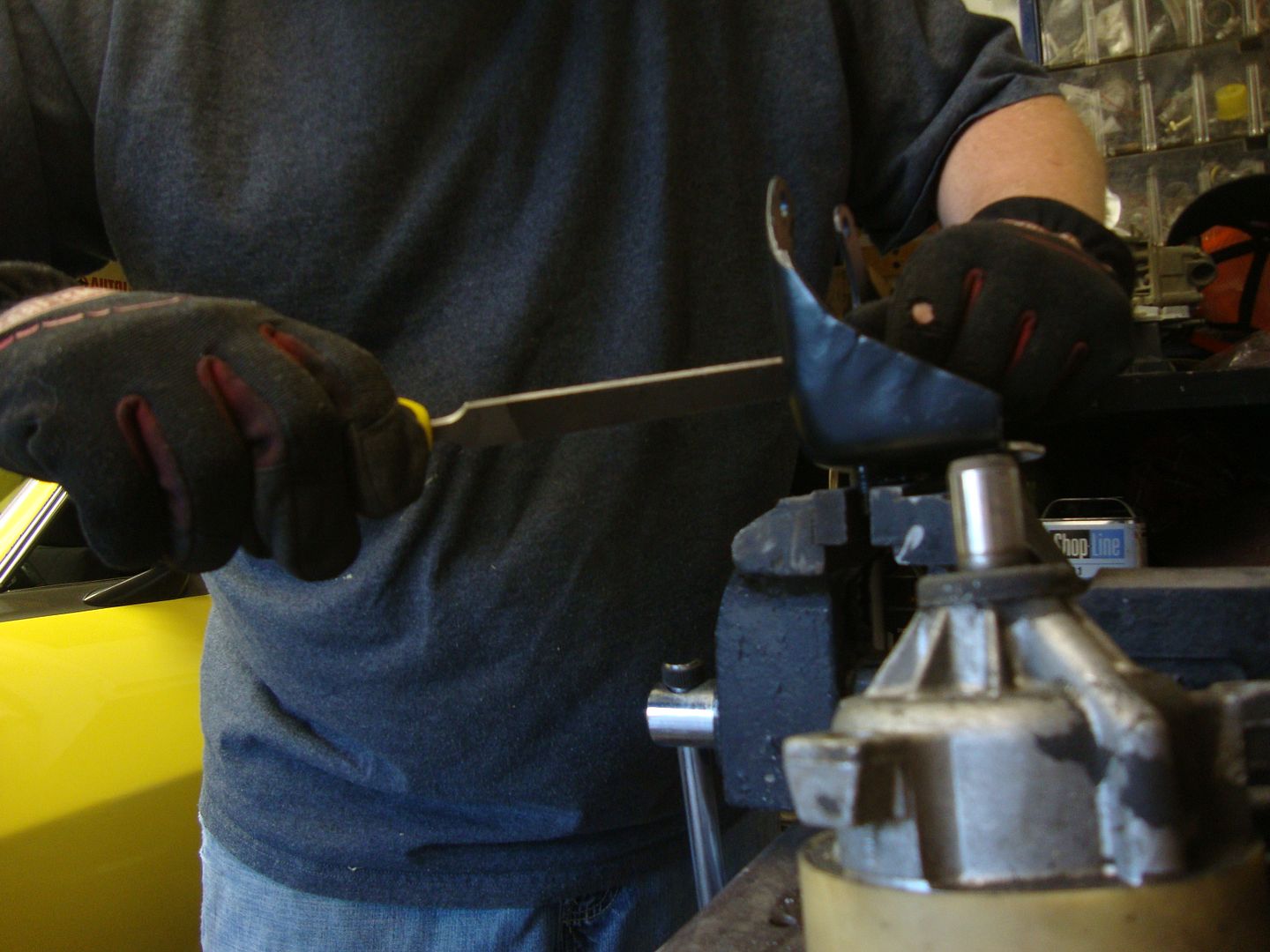 Carl, I've tried to outline this conversion on my progress thread. I am still needing to update my thread, but I've had to modify the bracket for the Thompson pump, but I simply used a cut off wheel and a die grinder to clearance the opening.