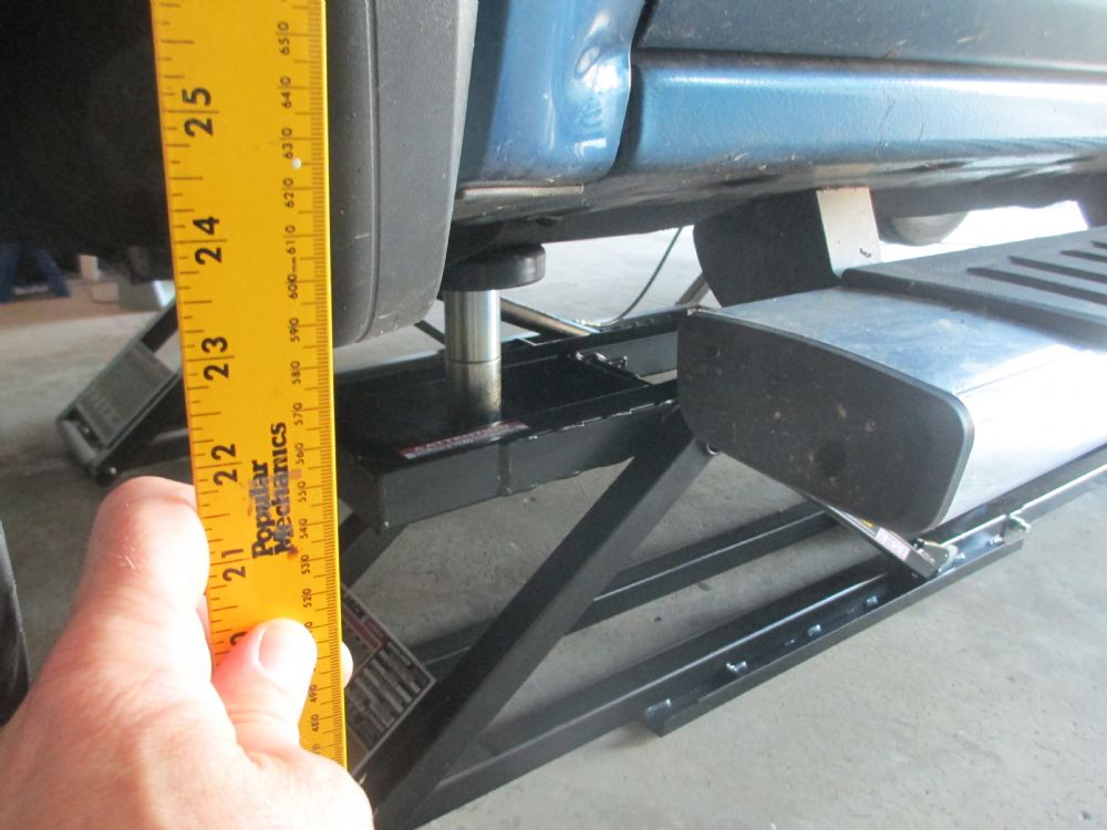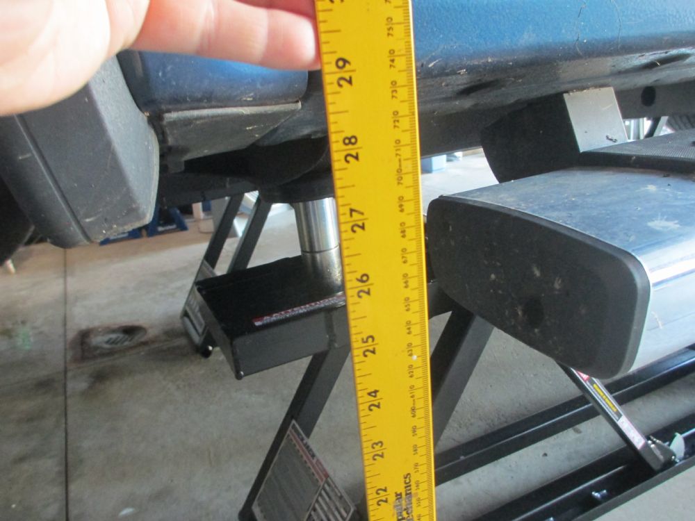 Thank you very much for taking the time to take these pics Chris!  It looks like it works well for modern trucks too then, which is what I'd like to use it for in my garage.  I have a 4 post lift, but my truck is too tall and wide for it.  This would be a better solution than just using a jack and stands. At least my garage with 12 foot ceilings should be able to lift a truck up to max height based on your pics.