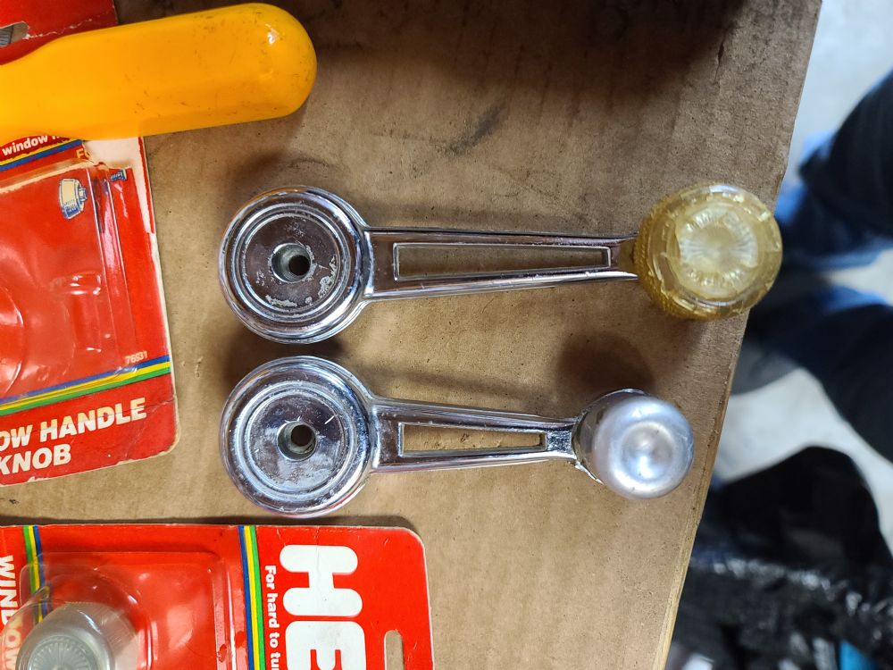 I have 3 pairs of the correct rear 72-73 quarter window cranks. All will need new knobs. For the clear knobs: Dorman HELP! Window Crank Handle Knob - 76943I am not sure but 68-70 Mustang quarter window cranks also are available brand new reproduction but I don't know if the window regulator splined drive is the same (can't see it being different).I can ship a pair in a USPS flat rate box, I'd be good with $10/pair plus the USPS shipping. I am using these cranks, but mine came off some 72-76 Torino ![]() |