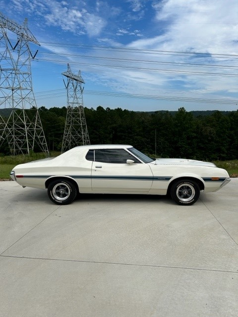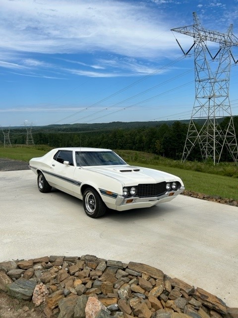 1972 Ford Torino Base Coupe This vehicle is the accumulation of 2 complete 1972 Ford Torino's. 1) Lady owned Wimbledon white L code Base Torino Coupe out of the state of Virginia. 2) Gold Q code 4 speed cobra jet Gran Torino Sport (Michigan rusty). In 2016 the Virginia coupe took on a (frame on) restoration. Receiving ALL driveline components including: 351 4V Cleveland V8, 4 speed wide ratio manual transmission, 9" Nodular Traction lock differential 3:50 gear, heavy duty front and rear sway bars, GTS wood grain gauge cluster with tach, bucket seats, Hurst shifter. The 351 4 bolt Cleveland, open chamber heads were completely rebuilt (receipts) 10.5:1 forged pistons, polished crank, crane cam #523801, bearings, gaskets, ect. New 750 cfm Holley duel feed carburetor, MSD ignition, large tube Hooker headers, full 3" welded exhaust with H-pipe, runs great, runs strong. Minor paint and body repairs were made with welded metal, thin filler epoxy primer sealed (interior and exterior). Wimbledon white base/ clear coat, guardsman blue metallic body stripes.
