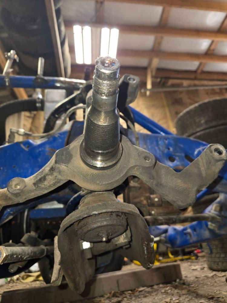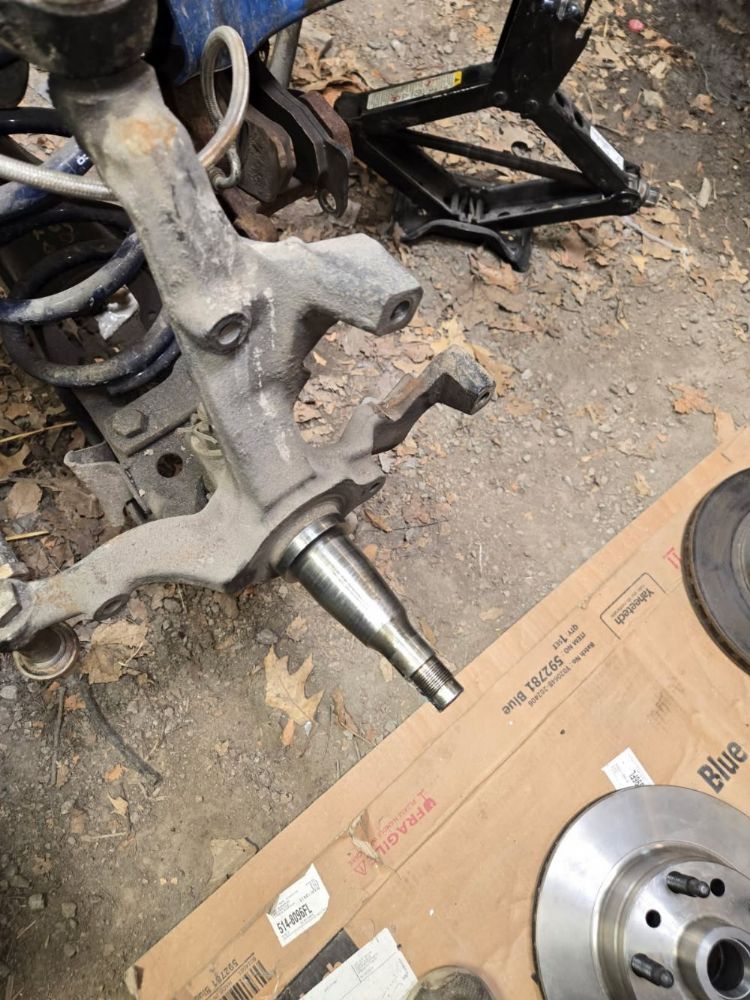 I have finally gotten an exact identification on the spindles caliber rotors. They're off in 85 crown Vic. The upper ball joints are screwing style. Now I need to check specs to see if I can find a 5.5 bolt pattern hub and rotor that can be turned down to 11 in that will align with the caliper.