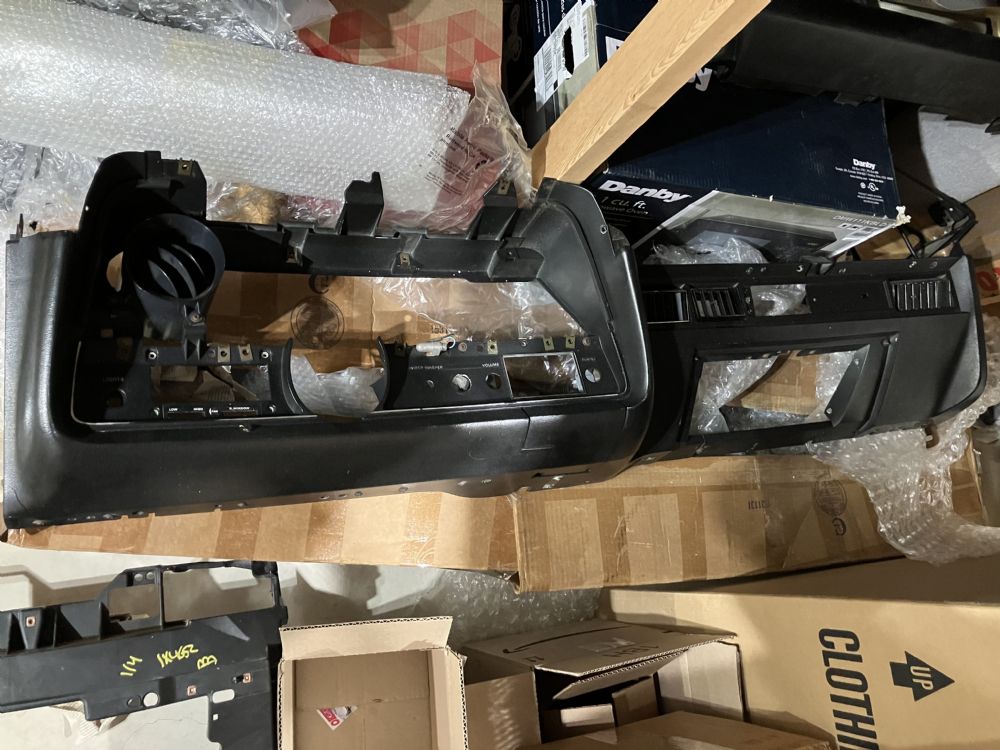 Took the fixed steering column out and replaced it with a tilt column. Replaced the rag joint at the same time because that thing was obliterated. I couldn’t stand the rusty metal support on the replacement lower black dash so I removed it, sanded and painted it. Replaced the heater/AC controls with a NOS one I found online years ago. The levers on the old one were hard to move, probably from some of the sandblasting sand getting in there. Took the aftermarket AM/FM/cassette unit out and replaced with factory AM/Fm/8 track. ![]() |